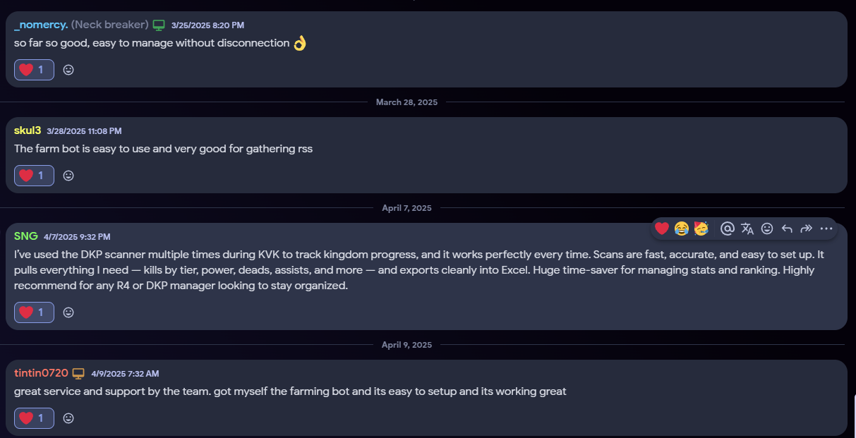 A bot which can scan kingdom rallies and show at discord you can see how players do rallies and you can give rewards them